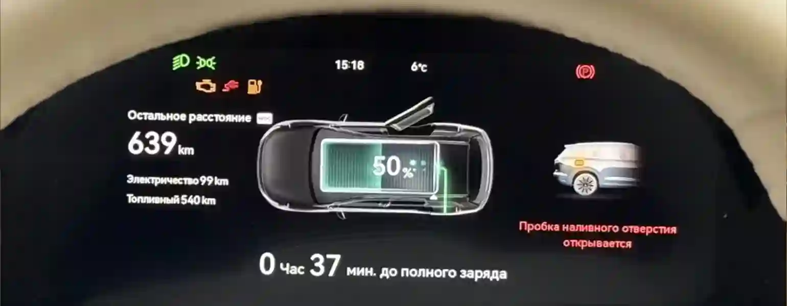 Этот гибрид поддерживает быструю зарядку до 75 кВт. Но я тестировал на зарядке на ВДНХ с мощностью 55 кВт. С 20% до 80% заряжалась машина примерно час с лишним, после 80% скорость падает в 2-3 раза для сохранения батареи.
